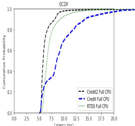 Fig. 9: ECDF Latency Distribution Full CPU Credit2 vs. Full CPU Credit vs. Full CPU RTDS