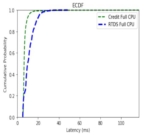 Fig. 7: ECDF Latency Distribution Full CPU Credit vs. Full CPU RTDS