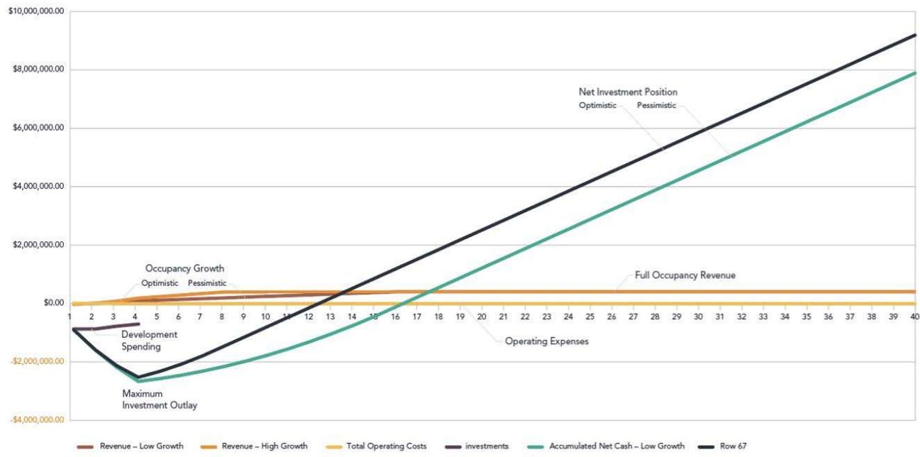 Figure 3: Investments, Revenues and Expenses for Initially Building the Whole Property