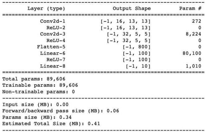 <table><tr><td>Layer type</td><td>Complexity</td></tr><tr><td>Linear</td><td>O(m*n)</td></tr><tr><td>Conv2D</td><td>O(c*h*w)</td></tr><tr><td>MaxPool2D</td><td>O(c*h2*w2)</td></tr></table>