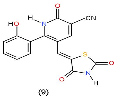 Also, the compound carrying thiazolidinedione nucleus in their structures such as pyridinecarbonitrile 9 and pyrido1,2,4-triazepine 142, obtained from reaction of the enone 3 with diaminopyridinedicarbonitrile 36a, may be used as antimicrobial agent against Candida albicans from tested compounds \[36\](Bio-6 scheme).