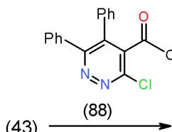 Furthermore, bifunctional heterocyclic system having vicinal chloro-acetyl groups (4-acetyl-3-chloropyridazine 87) or vicinal chloro-ethoxycarbonyl groups (4-carbethoxy-3-chloropyridazine 88) reacted with 6- amino-1,3-dimethyluracil (43) to yield the corresponding pyrimidopyrido- pyridazines 89 and 90 \[25\](Scheme 17).