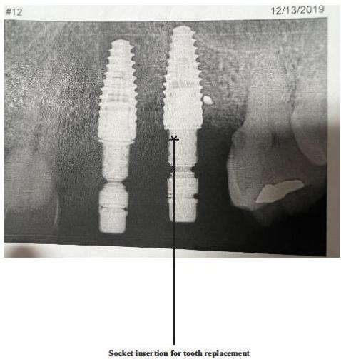 Figure 4: An X-ray photo of socket insertion for tooth replacement on December 13, 2019.