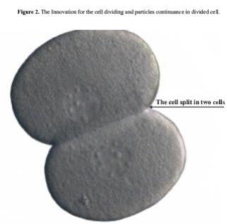 Figure 2: The Innovation for the cell dividing and particles continuance in divided cell. $\mathbf{E} = m c^{2}$