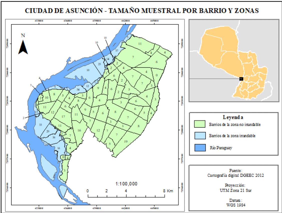 Figura 3: Tamaño Muestral de la Población de Asunción Por Barrios y Zonas