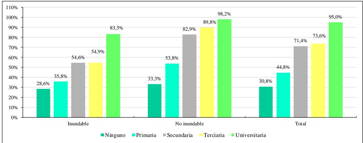 el $53,1\%$ de la zona inundable $( \mathsf { n } = 139 )$ y el $83,5\%$ de la zona no inundable $\scriptstyle ( \nwarrow 338 )$ ).