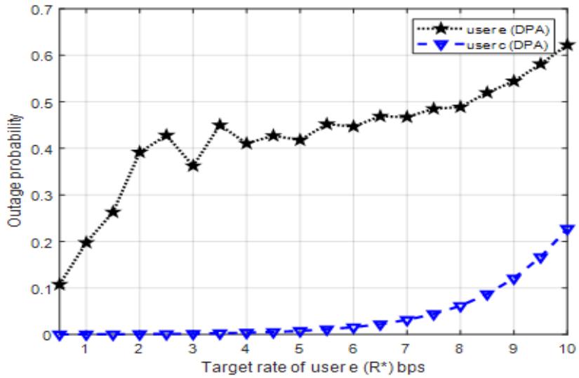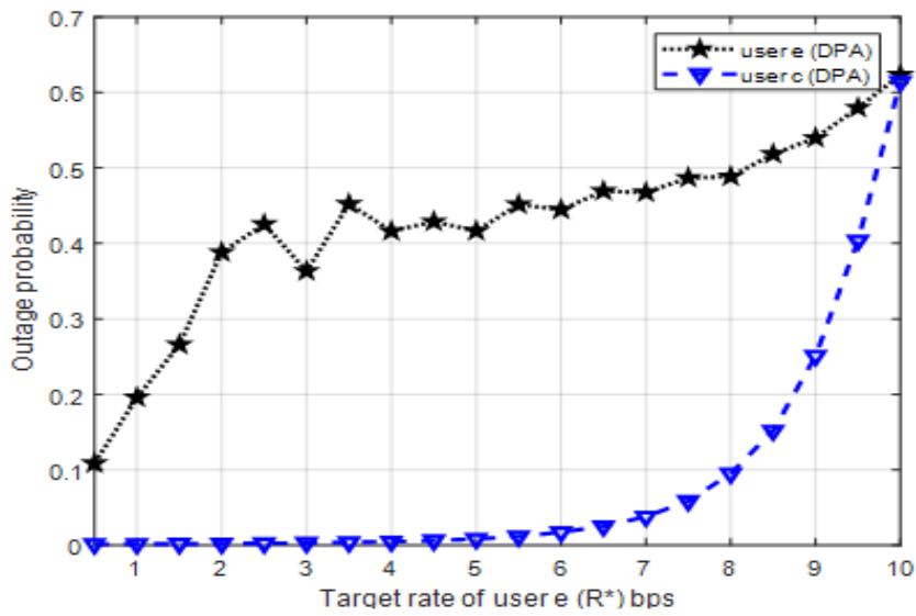 Fig. 4: Relationship between OP and Target rate for user e in DPA for