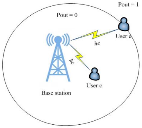 h _ {e} \& h _ {c} = \text{Channelcoefficientforuserse and c}