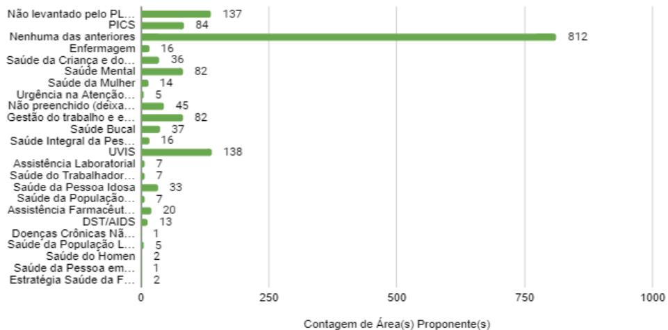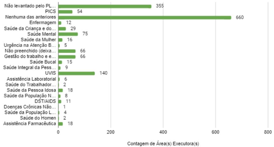 Thus, there is a larger number for the Health Surveillance Units, both as executing and proposing areas. Mental health and health work management are also highlighted in these two analyzed areas.