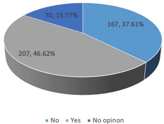 Regarding the veracity of the information provided on social networks, a very high number of users, $46.6\%$, responded Yes, that is, that social networks are a good source of information; $37.6\%$ answered No, and $15.8\%$ had no opinion (See Figure 4).
