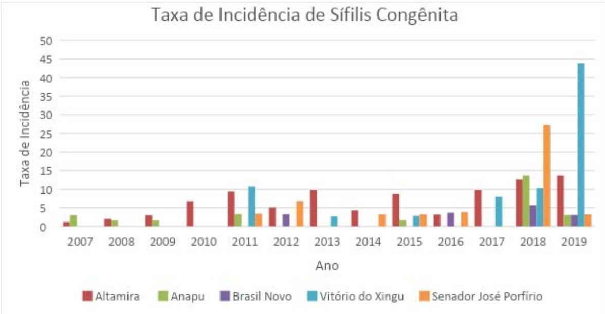 O município de Altamira é a sede administrativa da Região Xingu, e centro de referência em atendimentos de saúde para os nove municípios da Região. Em Altamira, no ano de 2020, o número total de casos de sífilis gestacional foi de 50 casos (taxa de detecção: 21,3/100o nascidos vivos). Nesse mesmo ano, foram notificados 32 casos de sífilis congênita (taxa de incidência: 13,6/ 1000 nascidos vivos (BRASIL, 2021).