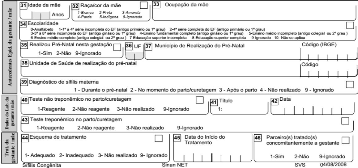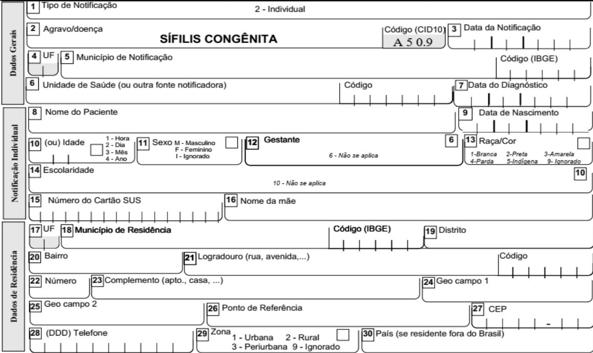 #### FICHA DE NOTIFICAÇÃO /INVESTIGAÇÃO SIFILIS CONGENITA