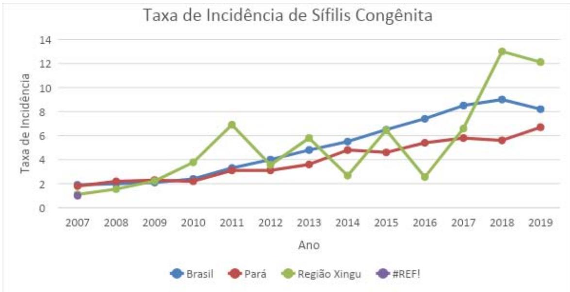 Gráfico 2: Comparação das taxas de Incidência de Sífilis Congênita de 2007 a 2019 Fonte: Elaborado pelo autor (2021)