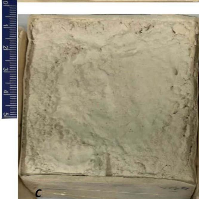 In this second phase, the suitability in the size of the substrate test tubes was tested, verifying that the $5 \times 5 \times 5$ test tubes used were too small to adequately characterize the processes. We also used a sandstone (Alastruey stone) with very low porosity, that was later replaced in the final experiments by another sandstone (Stone from Uncastillo) that had a greater porosity. However, in this phase a set of actions were taken in order to evaluate the cleaning difficulty for each type of poultice.