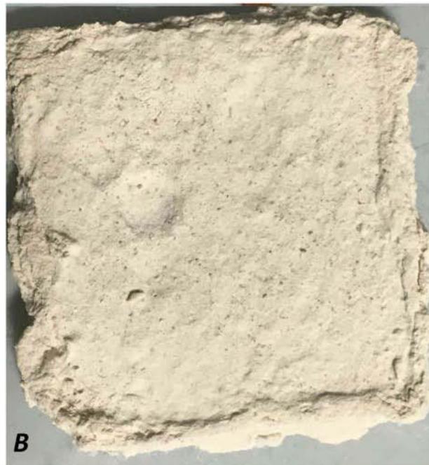 Forty test tubes of $10 \times 10 \times 5 \mathrm{~cm}$ were used (table 2), except for the color measurements, which used $5 \times 5 \times 5$ test tubes. The sides of all test tubes were waterproofed with plastic film in order to concentrate the absorption/evaporation processes on the face covered by the poultice. The upper face of the test tubes was covered with a "handmade" poultice on 4 specimens and with a "GPM" poultice on the other 4.