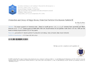 Dr. Shaoxu-ren. 2026. \u201cProduction and Decay of Higgs Boson, From God Particle H to Heaven Particle\u201d. Global Journal of Science Frontier Research - A: Physics & Space Science GJSFR-A Volume 25 (GJSFR Volume 25 Issue A5): .