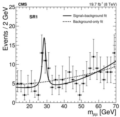 Based on the model, the authors estimated the mean square radius of an electrically polarized proton, which turned out to be 1.36 ffi 0.29 square femtometers. This is almost twice as large as the average squared radius of an unpolarized proton, which is about 0.7 square femtometers. The found position of the local maximum $\alpha \mathrm{E}$ coincides with the previously discovered one. The experiment was carried out on high resolution spectrometers (Mainz Microtron MAMI). In experiments on the scattering of electrons by protons, the polarizability makes a different contribution to its outcome, depending on the square of the 4-momentum transferred from the particle to the system. By measuring this dependence, Roche and colleagues found an anomalous peak at 0.33 square gigaelectronvolts back in 2000, which contradicts theoretical considerations predicting a monotonic decay to this region [10]. When this peak was recorded in previous measurements in 2000, many considered it to be an accident, but a new, more accurate measurement confirmed the presence of an anomaly. The experimentalists intend to perform more measurements to confirm that the peak does indeed exist and map out its shape. "Further into the future, one would ideally like to measure this through an independent reaction channel, which could potentially become available at Jefferson Lab if a positron beam were to become available" [3]. Nuclear physicist, Ronald Gilman of Rutgers University in New Jersey says: "I'd love to see another new result of the same quality before I'm completely convinced." However, there is no unity in the ranks of scientists on this issue. The theoretical physicist at the University of Maryland, Xiangdong Ji is more skeptical and believes that monotonic decay is a general feature of the theory [4]. But the deceptive logic of modern theory contradicts the experimental data. So back in 2018, during pp-collisions at the Large Hadron Collider, Roger Barlow discovered the formation of muon pairs in a narrow energy peak of colliding protons, strictly defined at the level of 28 GeV [11]. In light of a new approach to the polarization of the proton nucleus in p-p collisions, which have a larger square of momentum transfer than electrons in the experiments of Nikolaos Sparveris in the Jefferson Lab in 2022, it can be expected that Barlow discovered a local maximum at which in a quark-gluon plasma at In the strong nuclear interaction, polarization is accompanied by the formation of three unstable $\pi$ -mesons ( $\pi^0$, $\pi^+$, $\pi^-$ ) with the participation of virtual exchange pions and the subsequent production of short-lived protons and antiprotons [1]. In most cases, pairs of muons come from other sources associated with different events, and not from the decay of a single particle. If you try to calculate the original mass in such cases, it will spread over a wide range of powers rather than creating a narrow peak. In a new experiment, the CMS detector detected a large number of muon pairs and, by analyzing their energies and directions, found that these pairs were produced by the polarization of a single parent proton. You can look at Figure 5 and judge for yourself.