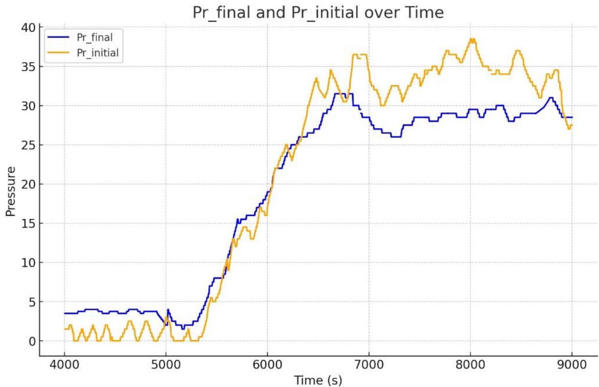 - There is a strong positive correlation between Pr_final and Pr_initial (0.98), as well as between Time (s) and both pressure values (above 0.89).
