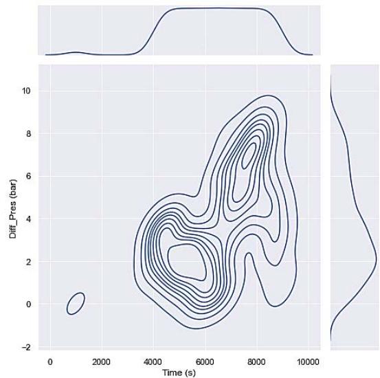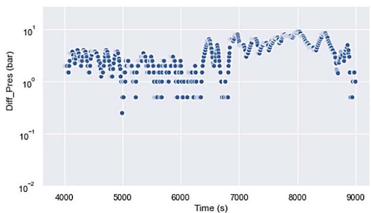 This categorization of the data was important in choosing the machine learning model, as a global used of logistic regression, initially suggested from exploratory data analysis, did not give a high score prediction. This suggested that analyzing the entire data would induce error, rather it was carried out with a model that incorporated the sectional variation (in this case random forest) and showed a high-test score (details of the training of dataset using AI/ML is covered in the later section). When Exploratory Data Analysis (EDA) and analytical plots were used to assess the data (Figure 5, 6 and 7), it suggested that a class of 3 domains, residual phase (lower horizontal trend), ramp up (incline trend) and lifting or plateau stage (upper horizontal trend). As such, the data was segmented and machine learning model was applied. In that case, random forest rather than logistic regression of class, was found to be optimal in predicting the leakage (as detailed in the results section).
