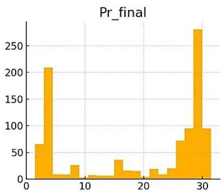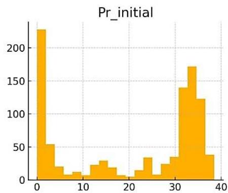 - Pr_final and Pr_init have a wide range (minimum around 1.5 and maximum reaching up to 38.5).