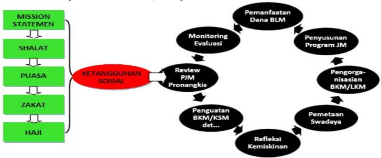 Along with that, if praying and fasting are guaranteed to lead to personal toughness. While Zakat and Hajji is a synergistic collaboration strategy and will certainly produce social resilience. All of this can be imagined, how will the result when the actor of the poverty reduction network successfully treads the cycle of The Pillars of Faith and The Pillars of Islam in depth? Of course, it will not only have a high level of awareness. However, it will also have the intellectual intelligence to maintain the trust and trust of the people visually. Individual and social resilience for development actors can anticipate any external economic shocks, which will affect regional economic growth in developing regions through the impact of export demand and capital inflows (Zerrer & Sept, 2020). Of course, it is also supported by a strategy to understand each other's differences in culture, power and status that must be communicated so that it becomes a potential driver of the process of progress (Simc, 2020). Stakeholders in this case the government and public institutions and local communities need to carry out strategies for the preservation and polarization of cultural assets, because it can be economically profitable and key in making investment decisions (Bottero et al., 2020)
