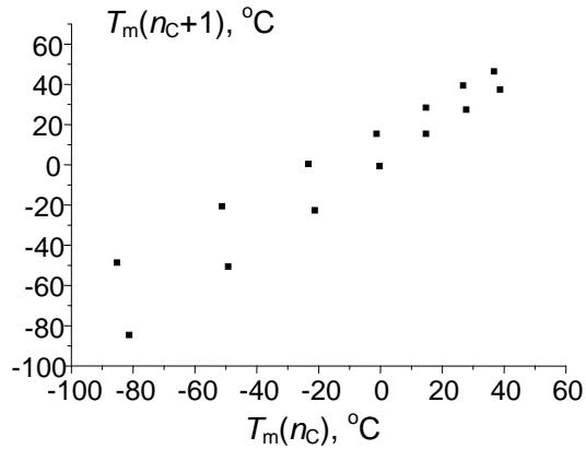 Another example with alternating melting points of homologous $n$ -alkane carboxylic acids is considered in [5].