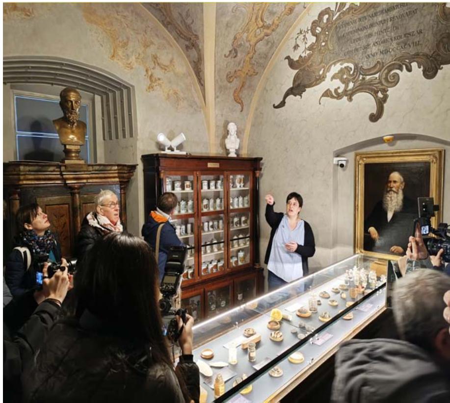 Transylvanian National History Museum (Muzeul National de Istorie a Transilvaniei, MNIT), Dr. Georg Hintz as the property owner, and Dr. Ana-Maria Gruia, curator of the Pharmacy Museum. She announced that the Pharmacy Museum has become this year a member of the association Aromas Itinerarium Salutis (AIS), marking its entry as the first Romanian member in this organization and thus joining the "European Route of Historical Pharmacies and Healing Gardens." Museum pedagogy will play there a significant role, as the newly opened museum aims not only to provide a retrospective on the history of medicine but also to serve as a meeting place. Schoolchildren will be involved in guided activities designed to spark their imagination, curiosity, and experimental spirit, with activities such as making soaps, candles, candies, and even perfumes.