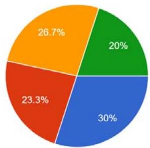 Daily 3-5 times a week 1-2 times a week Rarely From this pie chart illustrates how often students eat in the college cafeteria, based on 90 responses. According to the data, $30\%$ of students eat in the cafeteria on a daily basis, and 23.3 percent go there 3-5 times per week. This suggests that the cafeteria is frequented by more than half of respondents $(53.3\%)$. However, only $26.7\%$ of students eat there more than once per week, and $20\%$ of students rarely make use of the cafeteria's services. Based on this distribution, it would appear that the students the cafeteria serves are a mix of regular and occasional diners. Meal planning and demand forecasting become more difficult as a result of this variation in usage, which can lead to food overproduction and waste if not carefully managed.