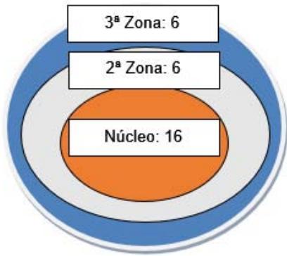 Adotando os preceditos da lei da dispersão do conheimento@científico,formulada por Bradford (1934)4 estabelecemos tres zonas (um nucleo central e das zonas periféricas), definindo o numero de artigos de cada zona a partir do calculo de um terme (9,3) do universo dos artigos mapeados (28) para cada uma, conforme aparemos na figura 2 que exibe o "core" da producao acerca do tema pesquisado. Organizamos os periodicos em ordem decrescente de produtividade e os distribuimos[^5].