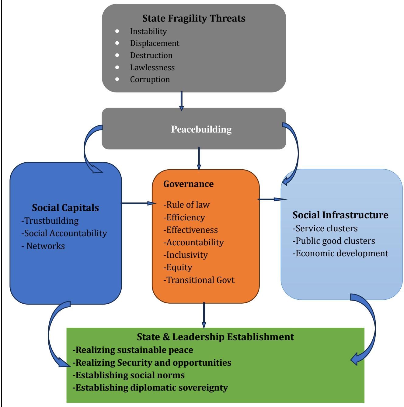 Social capital, governance, social infrastructure, state establishment, and leadership interrelatedness have a philosophical and foundational dimension to transforming states from political instability to sustainable resilience. These interrelatedness dimensions encourage a holistic system that regulates state national identity and political legitimacy. The interrelated factors synergise the difference between a flourishing society and one that breaks down under the heavy weight of lawlessness, displacement, corruption, and destruction. For instance, this transformation's core is social capital, which comprises trust-building, social accountability, networks, and peacebuilding.