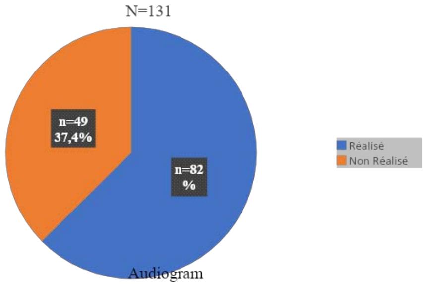 The audiograms carried out showed that $25.6\%$ of workers had an abnormal audiogram, i.e. one worker in 4 had an abnormal audiogram.
