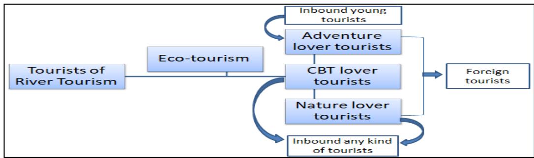 This segmentation is done through a distinct field survey. Around 50 people of different ages were taking part in this survey. It is notified that adventure lover tourists, Community-based tourism lover tourists, and nature lover tourists are interested in river tourism. Adventure lover tourists are mostly coming from young age people. Moreover, tourists from different countries are also interested to take part in river tourism in Bangladesh. They want to explore the scenic natural beauty of Bangladesh through river tourism. Overall river tourism can support eco-tourism that is environment friendly.