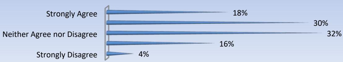 The data of Chart 03 shows that $4\%$ of tourists strongly disagree, that River tourism development can create collaboration between local communities and tourists from different areas that makes socio-economic development. $16\%$ of tourists disagree with this statement. $32\%$ of tourists neither agree nor disagree. $30\%$ of tourists agree and $18\%$ of tourists strongly agree with this statement. So we can see almost $50\%$ of the participants agree with this statement.