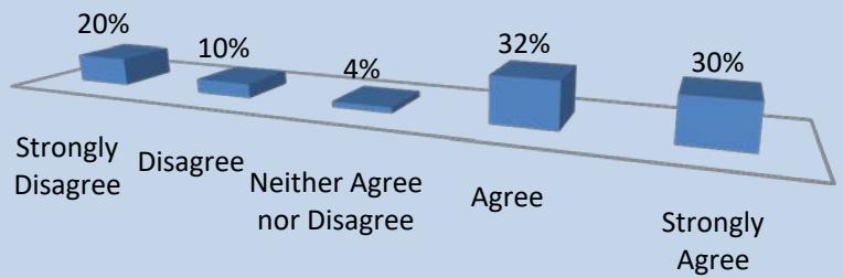The data of Chart 05 shows that $20\%$ of tourists strongly disagree, that River tourism development can promote the importance of river preservation and diminution of river pollution. $10\%$ of tourists disagree with this statement. $4\%$ of tourists neither agree nor disagree. $32\%$ of tourists agree and $30\%$ of tourists strongly agree with this statement. So we can see almost $62\%$ of the participants agree with this statement.