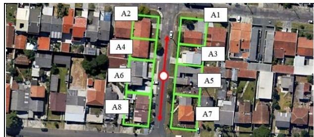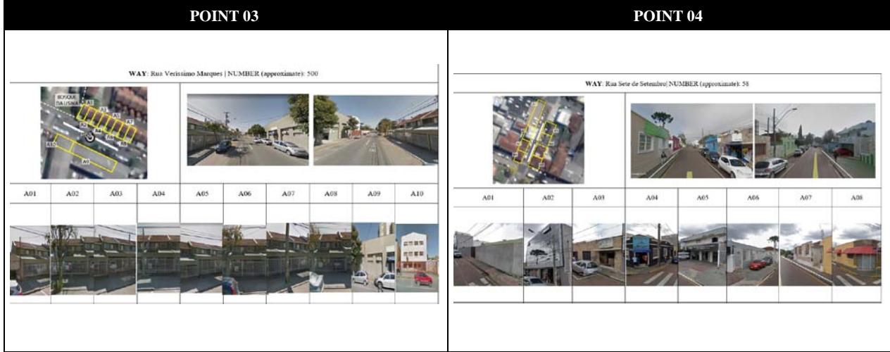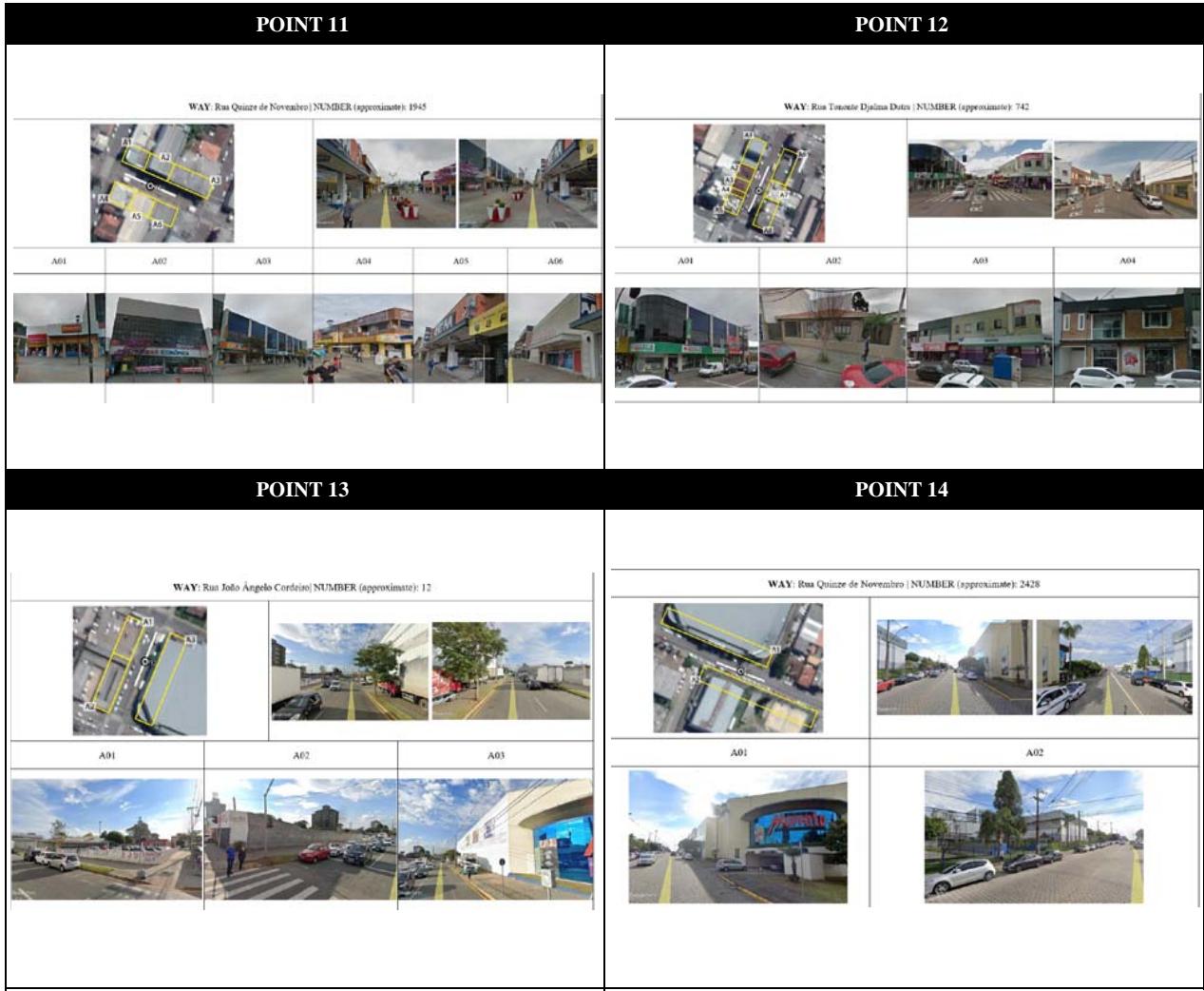 Analyzed areas were determined by identifying intersections between geo-localized concentration spots and public street spaces within the city center neighborhood of São José dos Pinhais, which is the place in the municipality with most occurrences of property offenses. These selected areas are important to the study as they illustrate the urban context in which criminal incidents have been reported.
