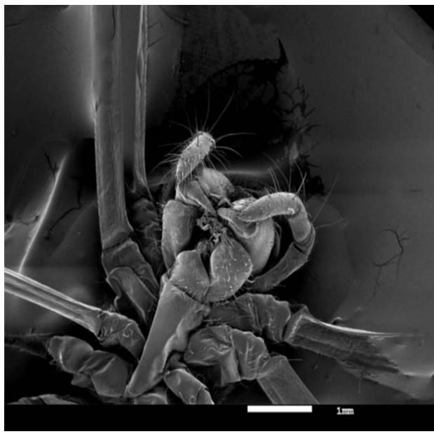 SEM-EDS is very useful for forensic investigations with its ability to visualize surfaces, position the beam for analysis, and generate elemental and chemical information about heterogeneous constituents of the sample. Some examples show multiple uses for this device. In an attempt to identify bullet wipers from wounds, pork ribs with intact musculature were shot with.45 caliber ammunition from a range of 1 to 6 feet. Unexpectedly, the shot was fired from a distance of 6 feet, and after processing the tissue and bone for viewing in his conventional SEM.
