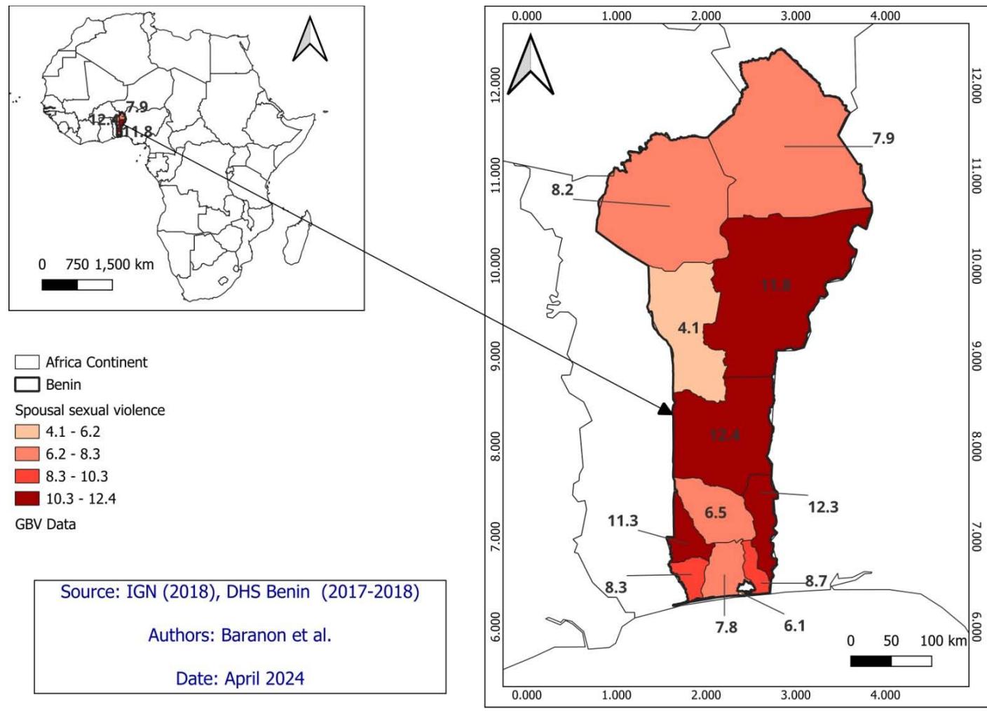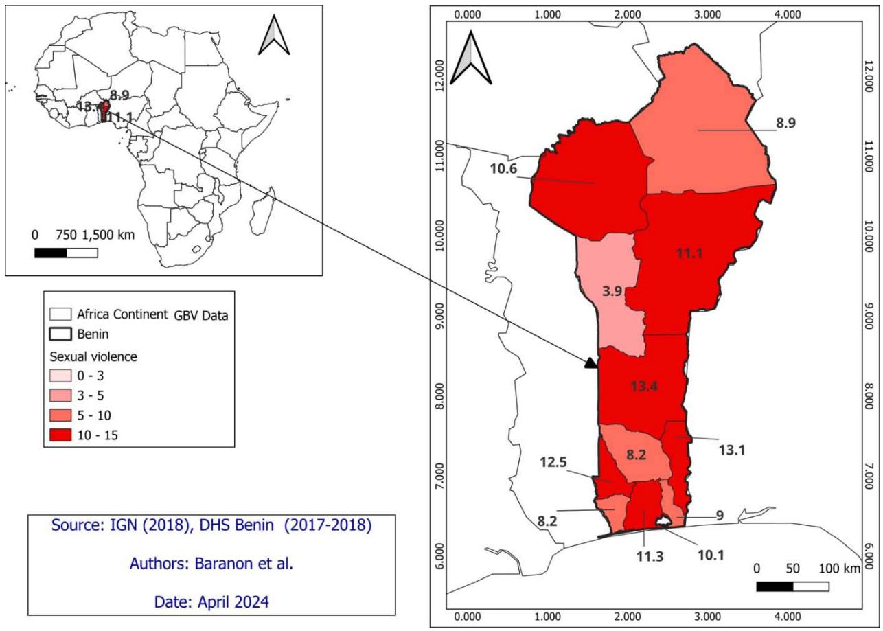 Benin's socio-cultural and economic contexts play a crucial role in shaping the country's prevalence and nature of GBV. Traditional gender norms, patriarchal structures, and in equalities in access to resources contribute to the perpetuation of violence against women and girls. Additionally, disparities in urban-rural development and access to essential services such as education, healthcare, and law enforcement further exacerbate vulnerabilities to GBV. Furthermore, statistical data indicates disparities in GBV prevalence across different regions of Benin. For instance, the DHS data reveals variations in the prevalence of GBV between urban and rural areas, with rural areas often experiencing higher rates of violence. Moreover, socio-economic factors such as poverty and unemployment are closely linked to GBV, with marginalized populations facing heightened risks [10].