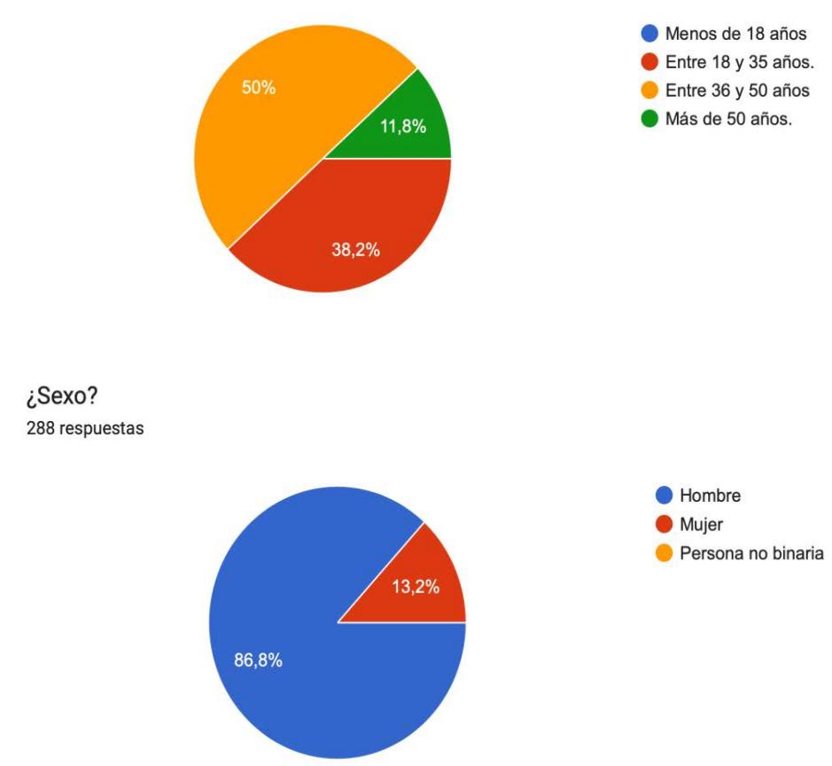 ¿Edad? 288 respuestas