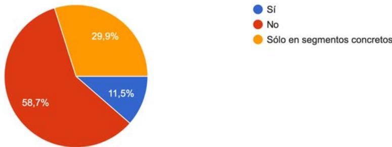 Por último se quiso preguntar a los y las encuestadas por su predisposición a pagar por la aplicación, dado que la compañía decidió en 2020 dar un paso adelante para aumentar los ingresos, bloqueando con previo pago algunos servicios de gran popularidad entre los usuarios, como era, por ejemplo, los rankings clasificatorios en los sectores ciclistas. Alrededor de 1 de cada 5 de los encuestados manifestó su predisposición al pago, apreciando así el valor añadido de la plataforma. Tras un periodo de prueba gratuito, el precio es de 7,99 euros si se trata de una suscripción mensual o 59,99 euros si es anual.