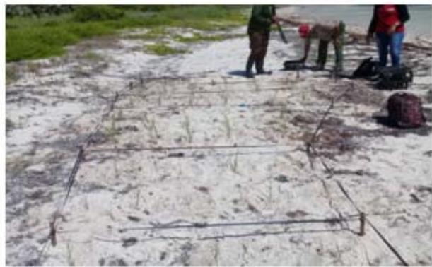 Figura 10: Establishacion de Sporobolus virginicus en la zona frontal de la duna costera de Playa Las Coloradas, Cuba