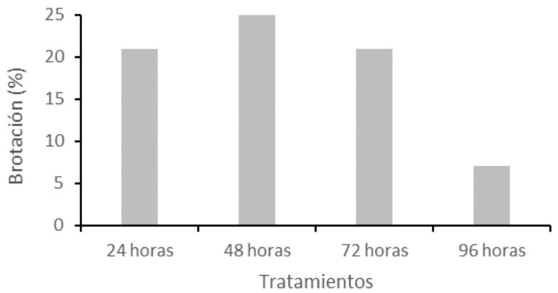 Al analizar el comportimiento de la brotación se apprecia que cuando la plantación se realiza a partir de las 48 horas de colectado el material vegetal ocurre una disminución considerable en esta variable (Figura 7).