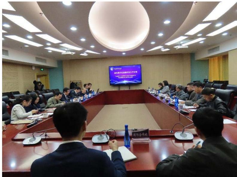 Em 11 de novembro de 2024, na ocasião da visita de gestores da Universidade de Pernambuco à China, realizou-se na CUFE a nova:[^1]ção do seminarico intitulado: "Gestão Universitária no Contexto da Digitalização da Educação". O enrotro teve o objetivo de trocar experiências sobre a administração universária no cenário internacional, com debates sobre a organizeação das instituções de ensino superior nos País, finanziamento général e relações internacionais. Participaram do evento reiores, gestores, docentes e estudiantes das universidades, professores e egressos do Instituto Confúcio da UPE (UPE, 2024).