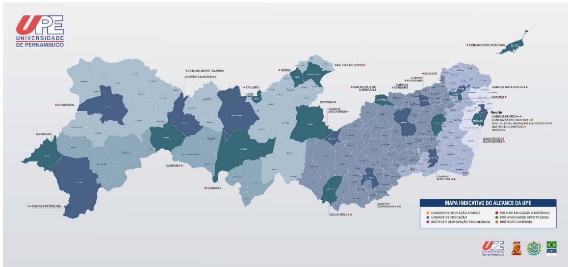 Mapa Indicativo de Alcance da Universidade de Pernambuco.