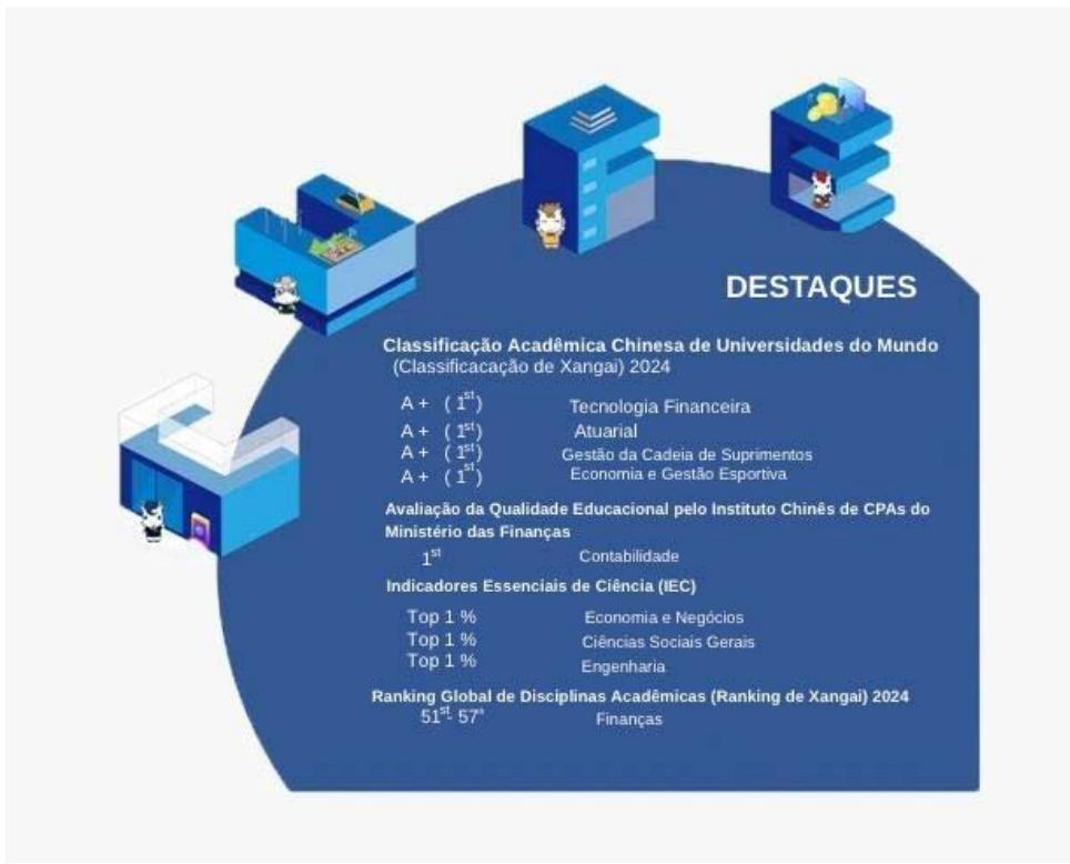 desenvolvimento coordenando outras como Literatura, Ciências, Engenharia, Educação e Filosofia. A instituição é uma das 100 universidades e faculdades que o governo chinês considera prioritárias no século XXI (CUFE, 2025).
