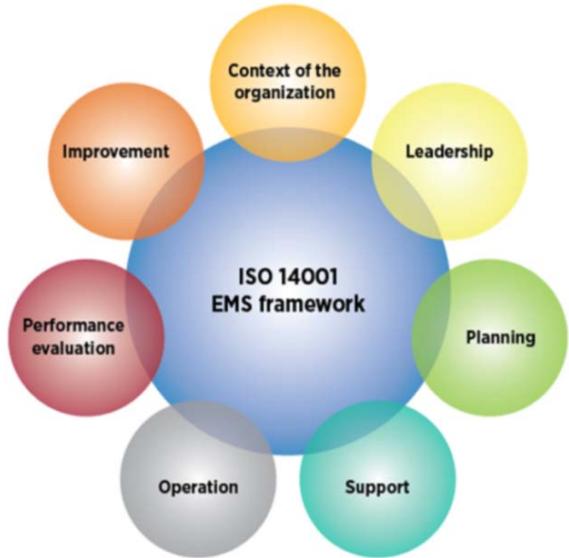 The International Standard Organization has developed special standards for implementing the environmental management system called ISO 14001. The ISO 14001 is a global standard that provide guidelines to establish an environmental management system. ISO defines the EMS as "part of the management system used to manage environmental aspects, fulfil compliance obligations, and address risks and opportunities" (ISO, 2016). Furthermore, ISO defines aspects as elements that can interact with the environment.