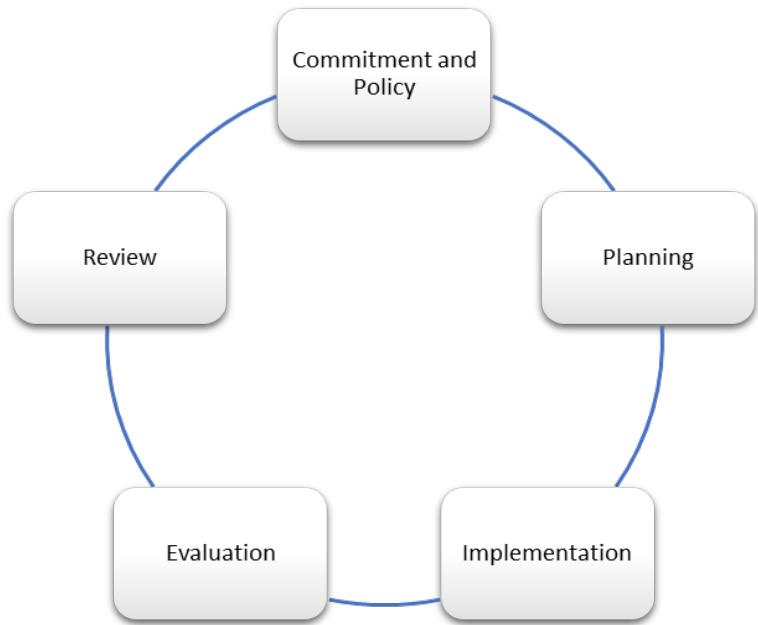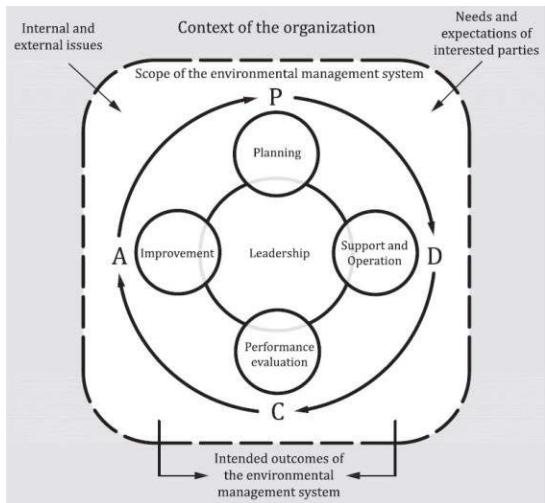 The environmental management system foundation is built on the basis of the Plan-Do-Check-Act (PDCA) model. This model drives the iterative process needed to achieve continuous improvements in the environmental program. Furthermore, organizations can apply this model to the whole program, or to each individual element (ISO, 2016).