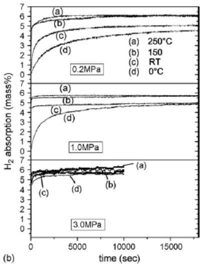 - (b) Hydrogen desorption below $0.03\mathrm{MPa}$ hydrogen pressure [13]