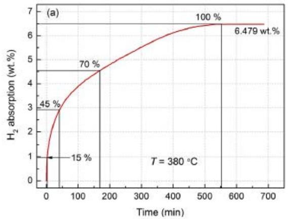 Fig. 3: Hydrogenation kinetics curve of hydrogen absorption of