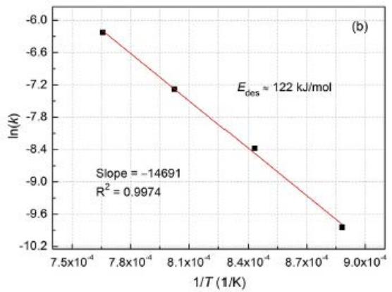 \ln k = -\frac{E_{\mathrm{des}}}{RT} + \ln k_{0}