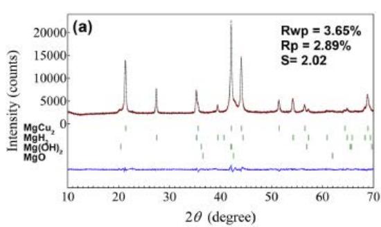 (a) unmixed $\mathrm{Mg_2Cu}$ samples, (b) $\mathrm{Mg_2Cu}$ samples doped with Y and Ni iii. Kinetic characteristics of hydrogen absorption and desorption of Mg hydrogen storage alloy catalyzed by $1\mathrm{mol}\% \mathrm{Nb}_2\mathrm{O}_5$ [15]